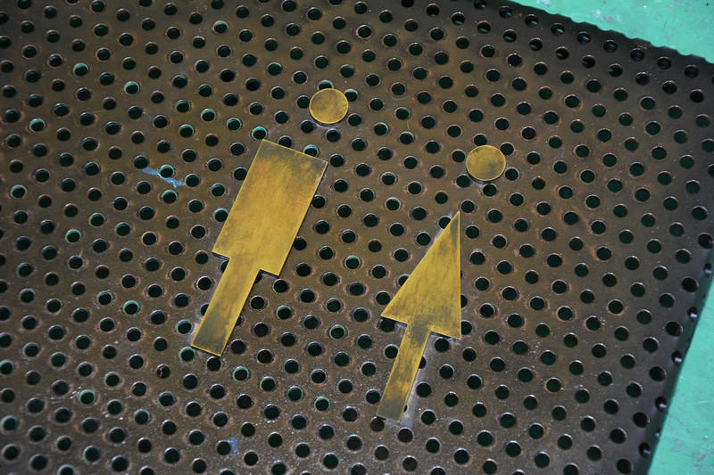 真鍮製のピクトサインを薬品処理でエイジング加工しました!